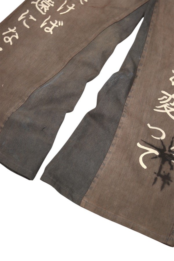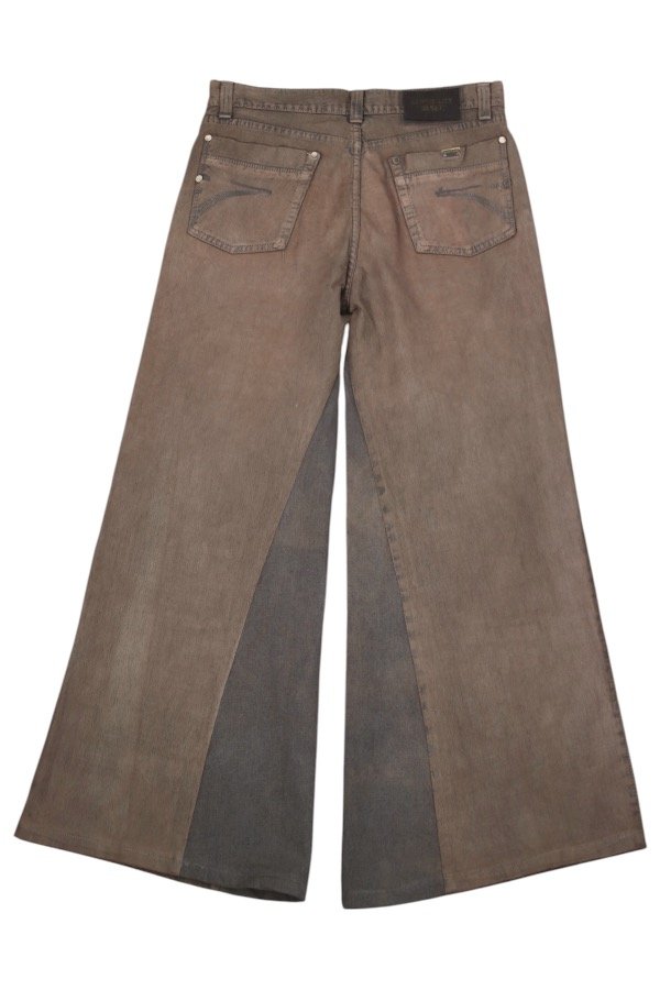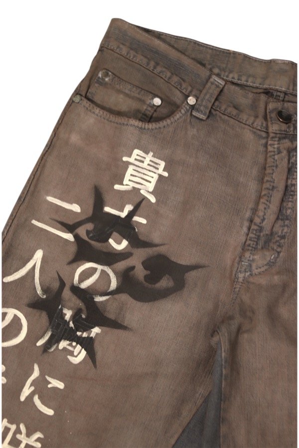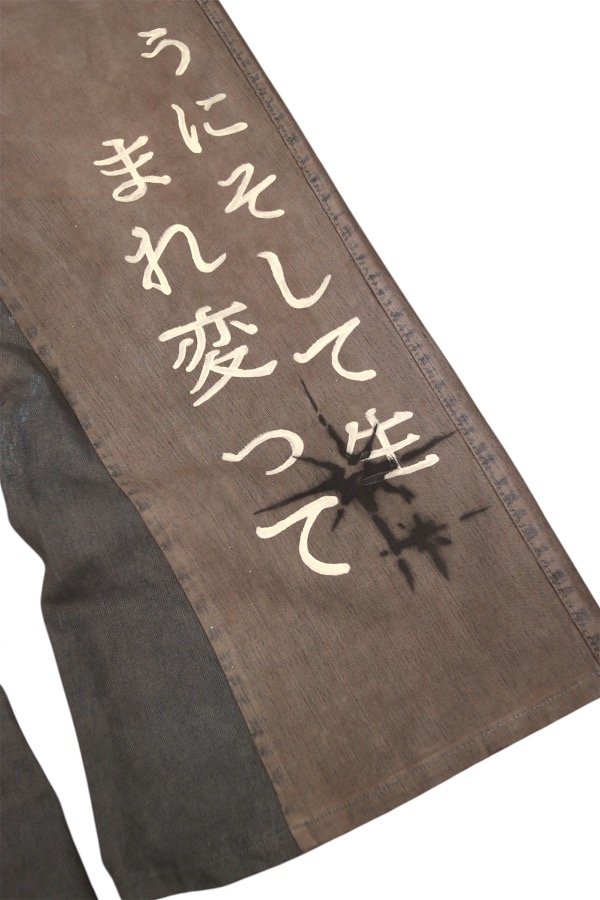 Jean baggy con agregado, color marron. Con estampado en crema y negro.