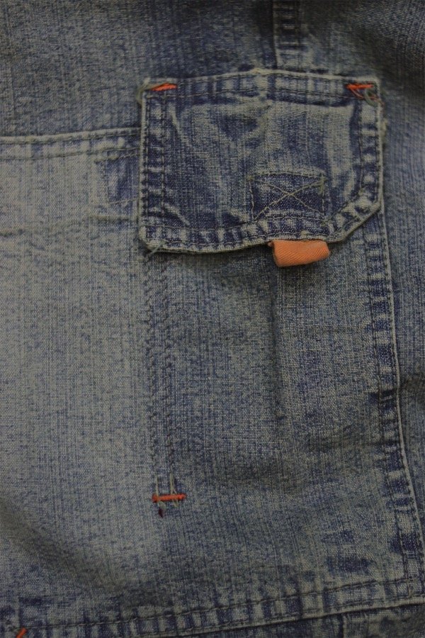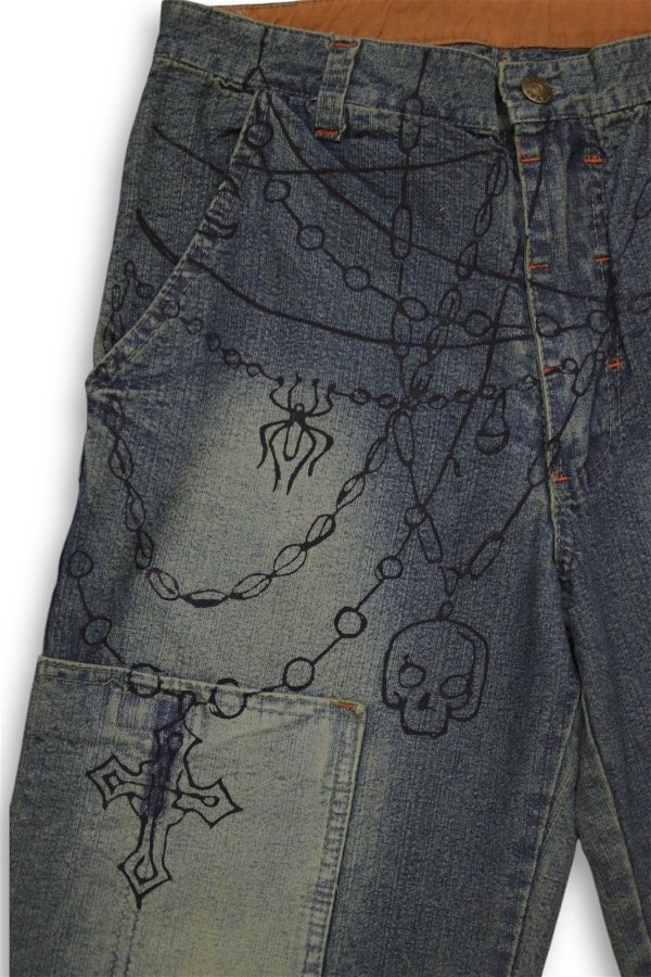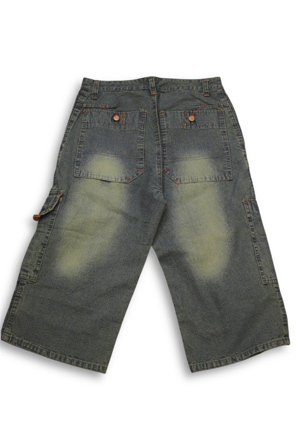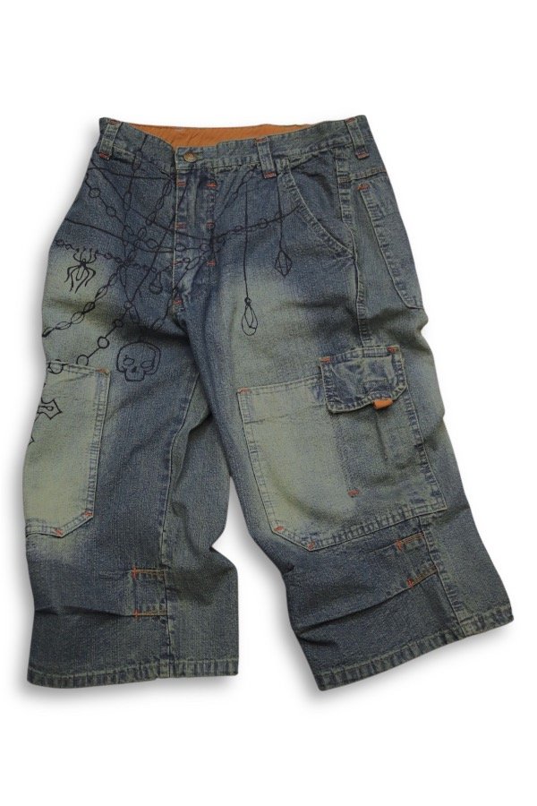 Pantalón bermuda tipo cargo de jean con estampa.